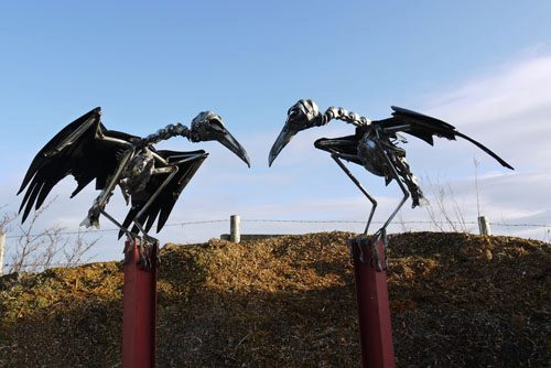 But the metal waste comment should have Will prepared for the fact she drags him to a collection of twisted, scrap mental statues in the back. To one of them in particular ]