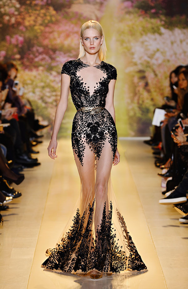 THE SHOW;After a little preliminary mingling, guests are invited into the showroom and seated onto elevated rows where you may find yourself in conversation with aloof designers, prying journalists, and fellow imPorts alike. The stage is glossy white and silver, and becomes the single lightsource (save for the glittery pop of cameras). Most of the women who walk are models, professional and sleek and six foot tall. Among them, however, are also imPorts -- any imPort lady who wished to volunteer her time and grace ahead of time will find herself squeezed into the most likely dress and directed down the catwalk. The cameras tend to frenzy whenever a more familiar face marches down the stage, and Daenerys among them to finish the show, her stride practiced and her smile only a little ironic. The clothing is sleek, in colours of black, white, and metallics, and sheer illusions and patterns. It ranges from evening gown to business attire (allegedly), and the heels tend towards tall.